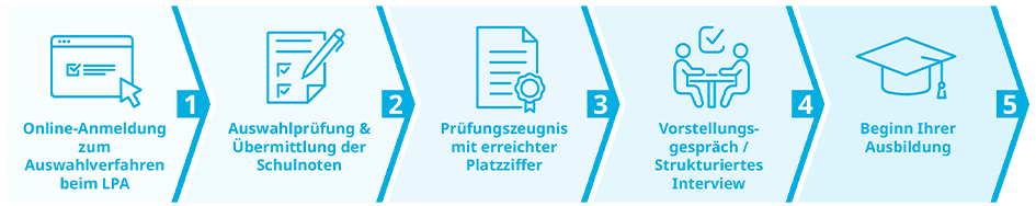 In diesem Auswahlverfahren, auch als „Beamtentest“ bekannt, werden neben einem Test auch die schulischen Leistungen berücksichtigt. Nach bestandenem Test und Übermittlung der Schulnoten erhalten Sie ein Prüfungszeugnis mit Ihrem Gesamtergebnis und Ihrer Platzierung.